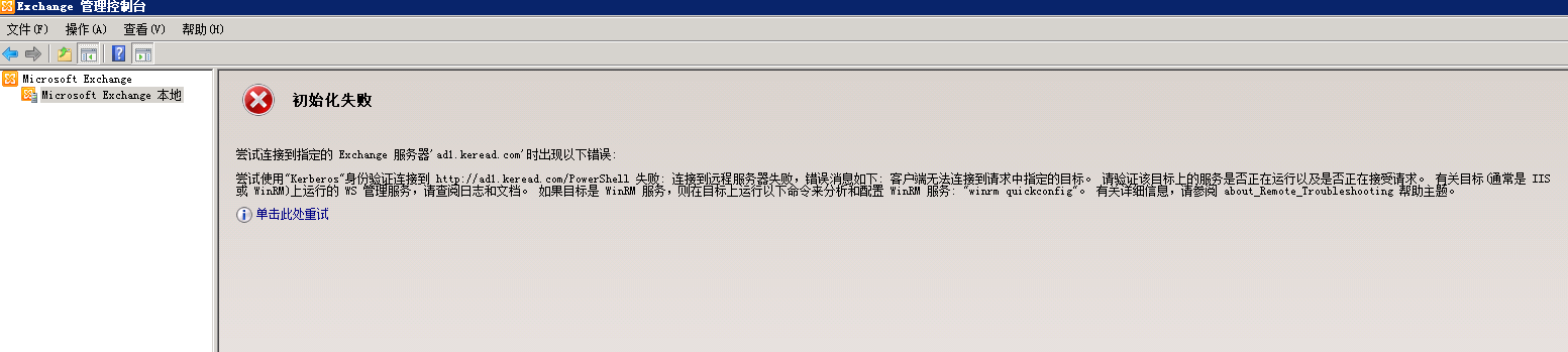 (已解決)exchange管理控制臺初始化失敗--Kerberos連接失敗