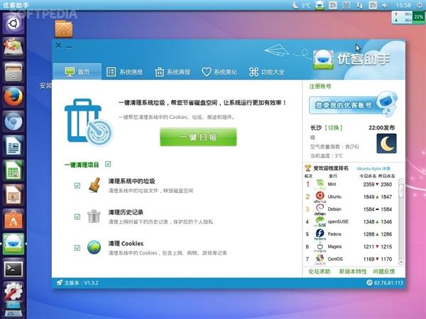 該系統由工信部軟件與集成電路促進中心、國防科技大學聯手Canonical共同研發,不僅系統默認語言是簡體中文,到處都針對中國用戶進行定制,還預裝并通過軟件中心提供了大量適合中國用戶使用的軟件服務。