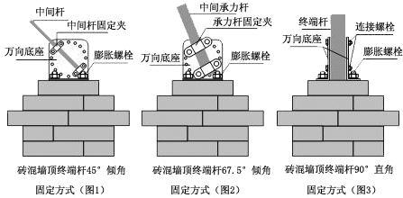 ???????????????? 2) 用M5×55螺栓將終端桿固定在兩個萬向底座之間。
