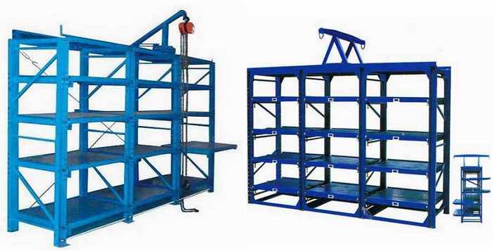 模具貨架又稱模具架或抽屜式貨架,主要存放各種模具物品,根據層載能力要求分為輕型模具貨架和重型模具貨架。貨架頂部可配置移動葫蘆車,以方便模具的起吊。