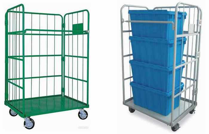 籠車又叫載貨臺車或物流臺車,是一種安裝有四只腳輪的運送與儲存物料的單元移動集裝設備。常用于大型超市的物流配送或工廠工序間的物流周轉。