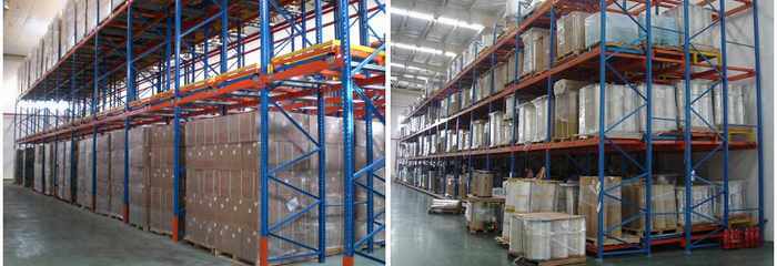 2、儲運貨物時叉車只位于貨架通道水平較低的一端作業,無需進入貨架貨物存儲通道。此類貨架具有存儲密度高,儲運速度快的典型特征。
