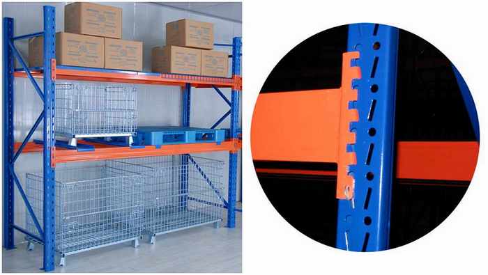 橫梁式貨架:可存放各類型貨物,承載力強、穩固耐用、層調可調節、選擇性強、可先進先出,庫存周轉率高。貨架常用顏色立柱天藍色,橫梁桔紅(黃)色或者黃色。