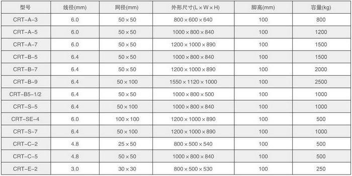 倉儲(chǔ)籠的規(guī)格比較統(tǒng)一,容量固定,下面是簡單的型號(hào)規(guī)格表: