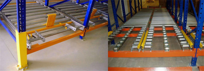 為使下滑流暢,如果輥筒式貨架的坡道較長,應在中間加設阻尼裝置,為使托盤貨物下滑至最底端時不致因沖擊力過大而傾翻,應在坡道最低處設緩沖裝置和取貨分隔裝置,因此設計、制造、安裝難度較大,成本較高。