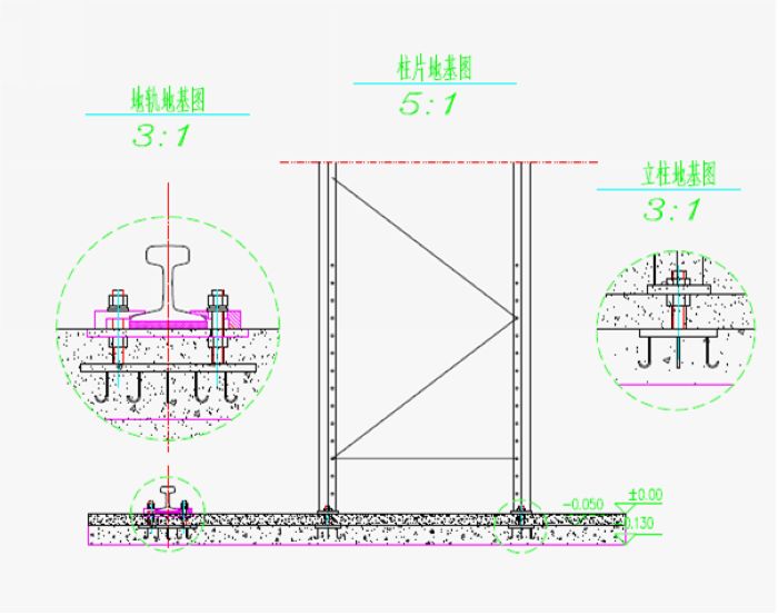 預埋件(包括軌道、立柱、車檔的預埋板)的布置、幾何尺寸和質量要求,應該符合圖紙規定。布置后或安裝前應對預埋件(預置坑)進行復檢。第一次需采用鋼筋水泥混凝土(含預埋板)厚度不少于80mm, 預埋件在一次澆注完畢后的整個貨架區的水平度為±10mm,且預埋件應與鋼筋焊接, 各預埋板上表面高度偏差不得大于±1mm,如下圖所示: