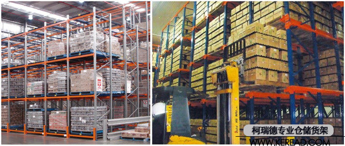 還有就是后推式貨架和駛?cè)胧截浖埽@兩種貨架都是先進(jìn)后出,有一定的局限性,只適用于小品種大批量的貨物。