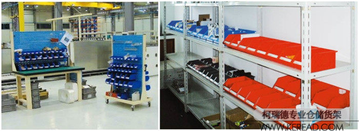 說到零件盒,它的協(xié)助功能更是強大,從貨架到車間設備,許多產品都離不開它的幫助,看下圖就能知曉,車間的各個工作桌掛板上、輕型貨架上、流利式貨架上還有置物柜、置物架等等。零件盒體積小、較輕便,適合小零件的存放,節(jié)省空間,提高工作效率。
