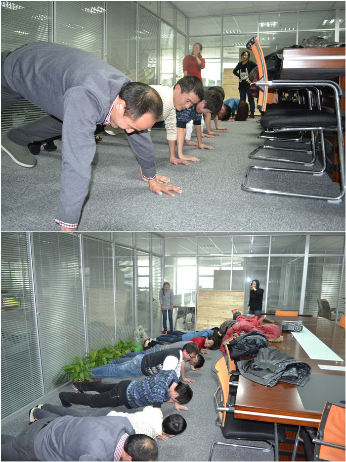 昨天,我公司舉辦了全員健身活動,上到經理,下到各部門職員,大家積極參與,寒冷的冬天無法阻擋大家的熱情,男生俯臥撐300!女生仰臥起坐300!好戲上演了!
