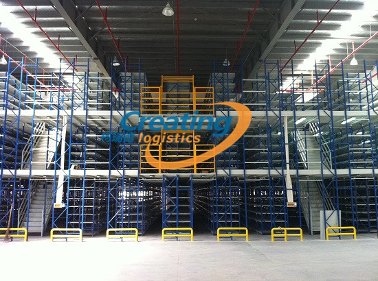 1、閣樓式貨架是用貨架做樓面支撐,可設計成多樓層(通常2-3層),設有樓梯和貨物提升電梯。