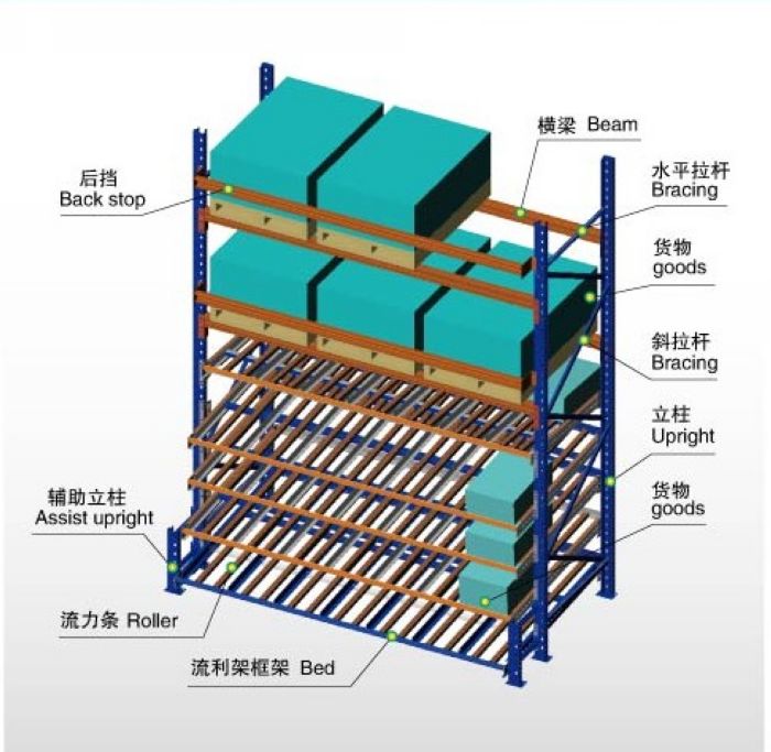中B型流利式貨架的結(jié)構(gòu)特點(diǎn)