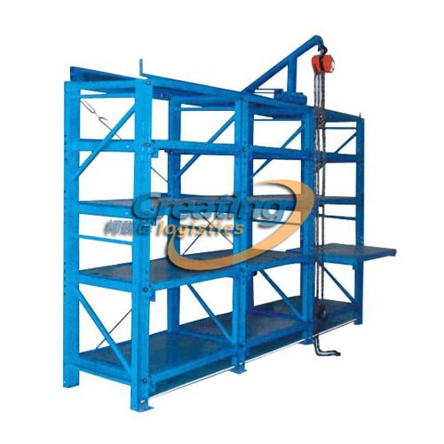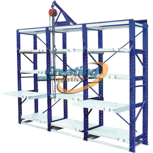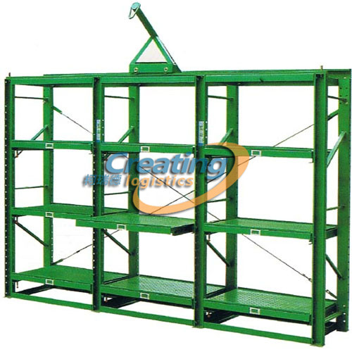 模具架種類很多,按照使用習(xí)慣可分為標準型和重型。貨架頂部可配置移動式葫蘆小行車,以方便起吊模具。