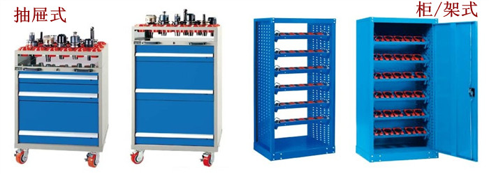 產品種類:一般分為抽屜式和柜式兩種,有的叫刀具車,有的叫刀具柜/架。