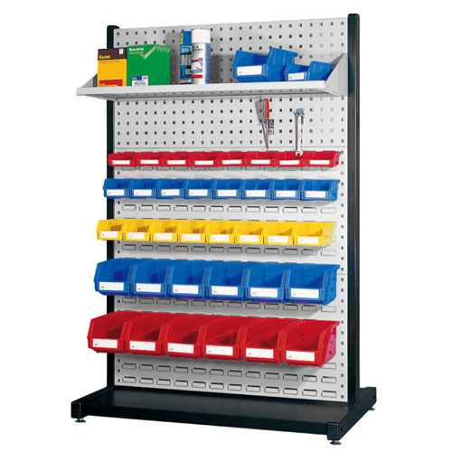 獨立型物料架可單獨使用,但更多的是結(jié)合背掛式零件盒及多用途的掛鉤配件使用,掛鉤與方孔掛板配合使用,可任意變換孔位,定位快捷,安全穩(wěn)固;背掛零件盒與百葉掛板配合使用,吊掛容易,配有色彩標(biāo)簽,小型物料、零件可利用色彩管理分類儲存。