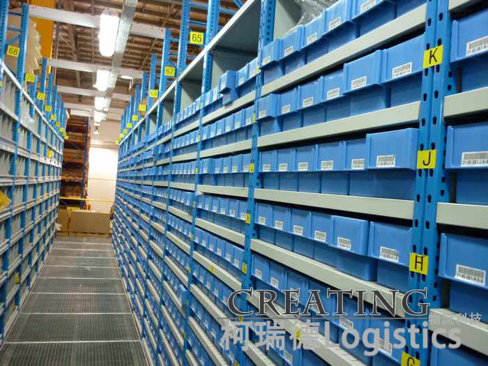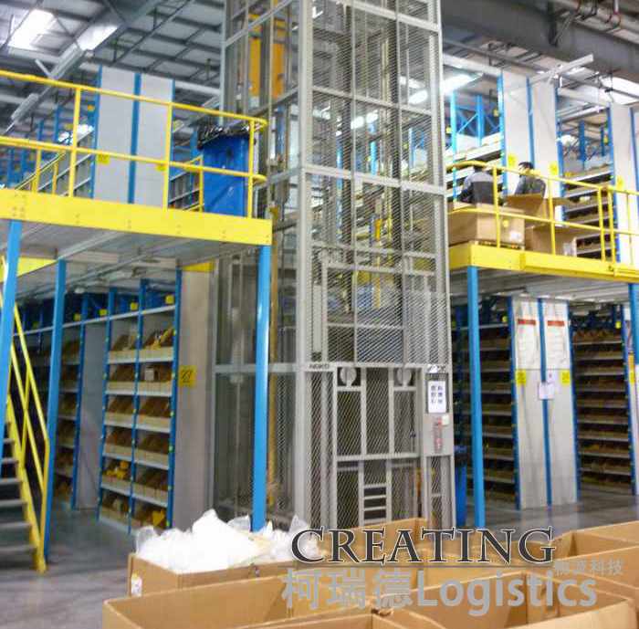 方案設計:貨架用來存放零件,載重方面不需要過大,選擇中型閣樓貨架即可。貨架上搭配零件盒使用,既能提高人工存取效率;也使整個倉庫看是去整潔、清爽;二樓網格地面,主要是為了達到消防的要求,還有就是采光;升降機的設計方便了貨物上下樓的搬運,節省了人力。