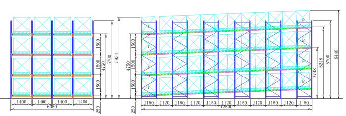 備注:層高可以任意以75mm調(diào)節(jié),此方案的層高是按倉(cāng)庫(kù)的未來(lái)托盤高度1200mm需要來(lái)設(shè)計(jì)安裝,如目前不需要這高度,可以按照現(xiàn)有托盤實(shí)際高度710mm需要高度安裝。