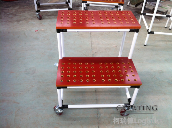 由線棒組成的移動階梯,滾輪和導向輪的使用不但能靈活移動,而且確保了作業的安全
