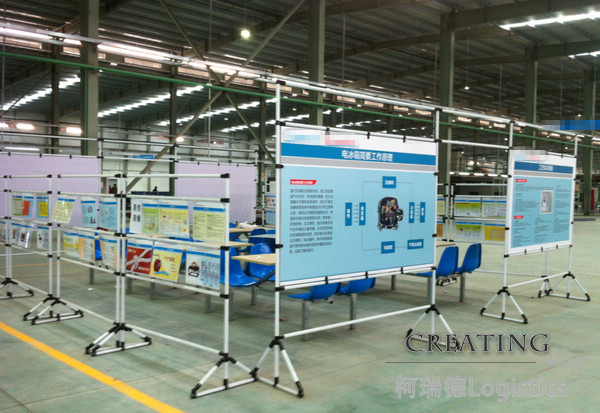 案例分析:了解清楚的客戶需求、存儲特點以及產品特點之后,我公司相關人員迅速提交了一個合理、實用的貨架方案,并且積極和客戶溝通獲取客戶對于貨架方案的反饋,以便及時做出修改。通過最后的商定,最終該貨架方案由重型貨架、懸臂貨架、中B貨架、線棒、工作桌組成,重型貨架、懸臂貨架、中B貨架主要用于電器成品及配件、原料的存儲;工作桌主要是協助生產線的操作,線棒是用來協助工作人員的移動以及存取貨的,利用線棒組裝靈活的特點,將線棒組裝成階梯狀,并且在底部安裝滑輪,便于移動。